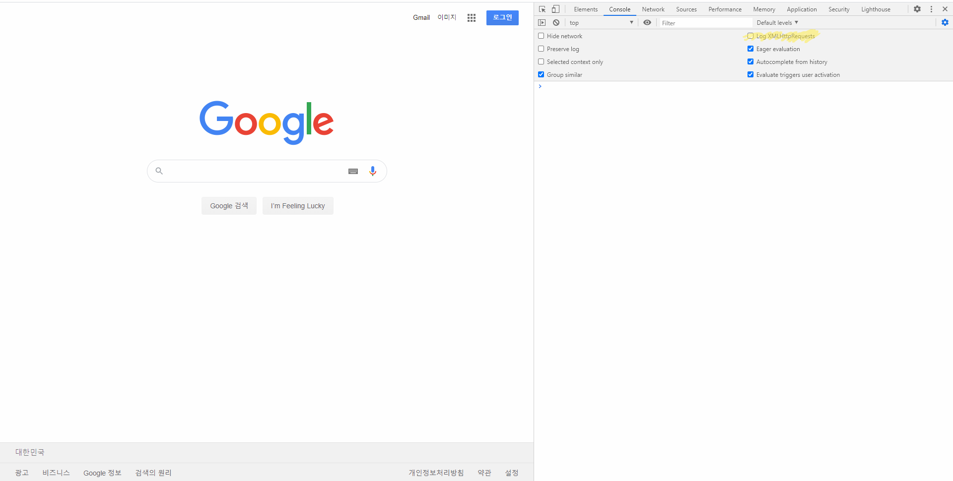 개발자도구 열고 Console클릭 후에 아래의 톱니바퀴를 누른 후에 Log XMLHttpRequesys 를 클릭해서 체크하자.