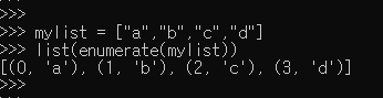 1-2. 리스트 내용을 번호를 붙여서 튜블로 만들고 그것을 리스트에 담기