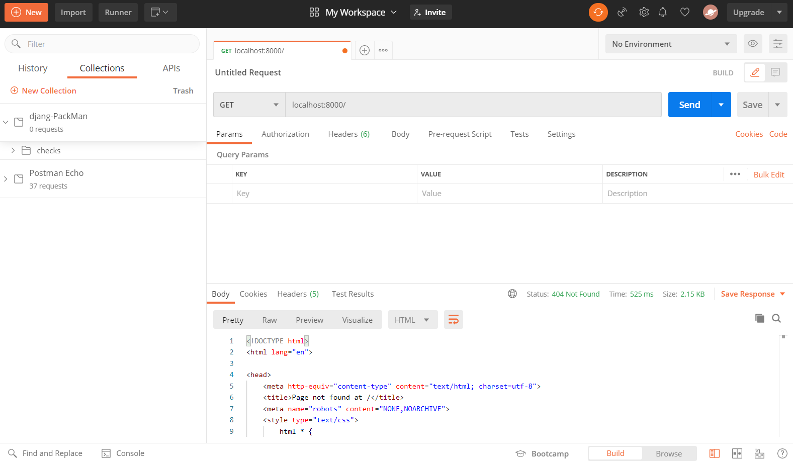 그 후에 우리는 로컬로 하는 거기 때문에 아래와 같이 GET 요청을 보내면 html 같은 것이 뜨나 확인해보자.