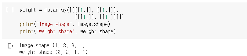 여기서 weight.shape은 (2, 2, 1, 1)이다.