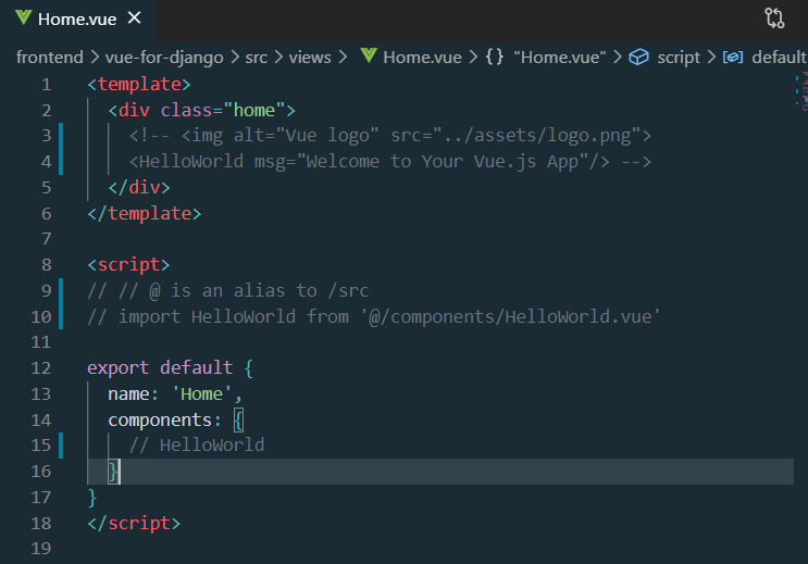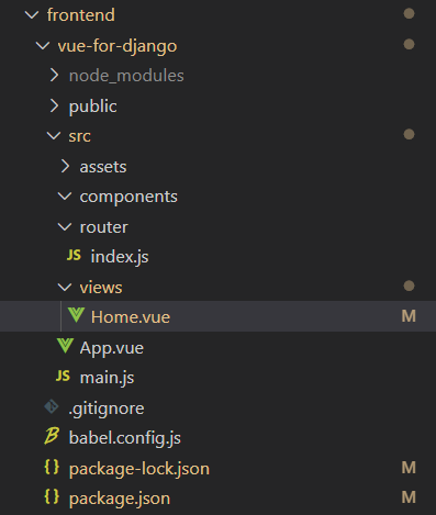 위의 구조에서 필요 없는 두가지를 지우자. HelloWorld.vue와 About.vue를 지우자. router는 쓸것이니 일단 두고, Home.vue와 App.vue도 사용할 것이기 때문에 그냥 두자. 그러면 이제 남아있는 파일의 코드를 정리해 보자.