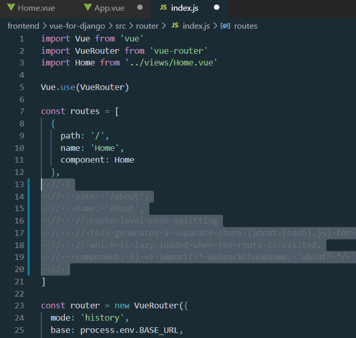 위의 사진을 보면 router에도 home만 남겨 둔다.
