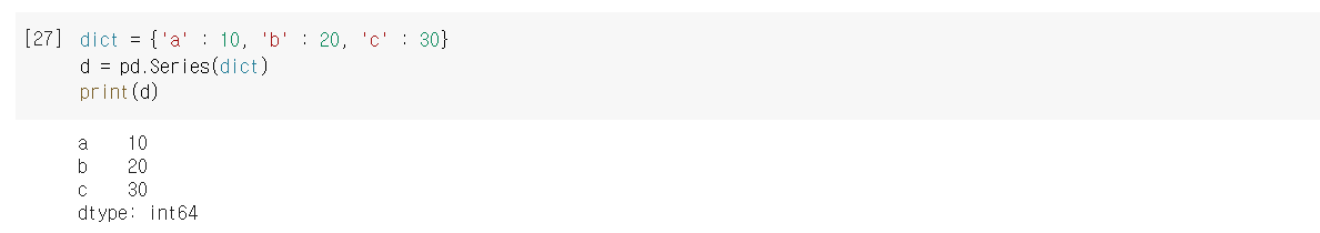 시리즈 데이터는 기본적으로 순서대로 index가 존재하는 것을 알 수 있다. 이러한 인덱스 값을 바꿀 수 있는 방법을 알아보자.