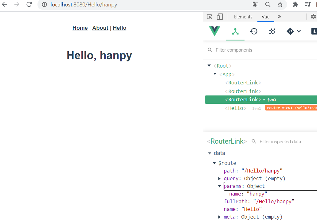 url이 있다면 variable routing도 사용 할 수 있어야한다. views폴더 안에 Hello.vue 파일을 하나 만들자. 그리고 index.js와 App.vue를 아래와 같이 수정해주면 된다.
