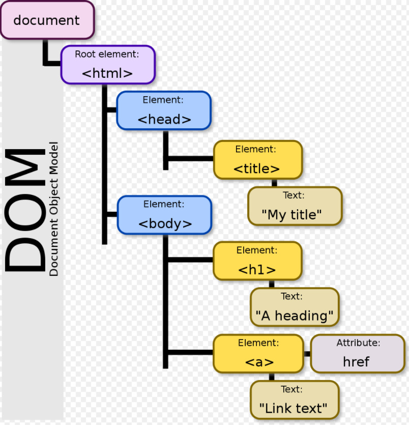 HTML 구조를 이해하려면 객체 지향 모델로 구조화된 문서를 표현하는 문서 객체 모델(DOM; Document Object Model)에 대해 이해해야 한다. 잘 구조화된 문서는 아래와 같이 DOM을 사용하여 트리 구조를 얻어낼 수 있다.