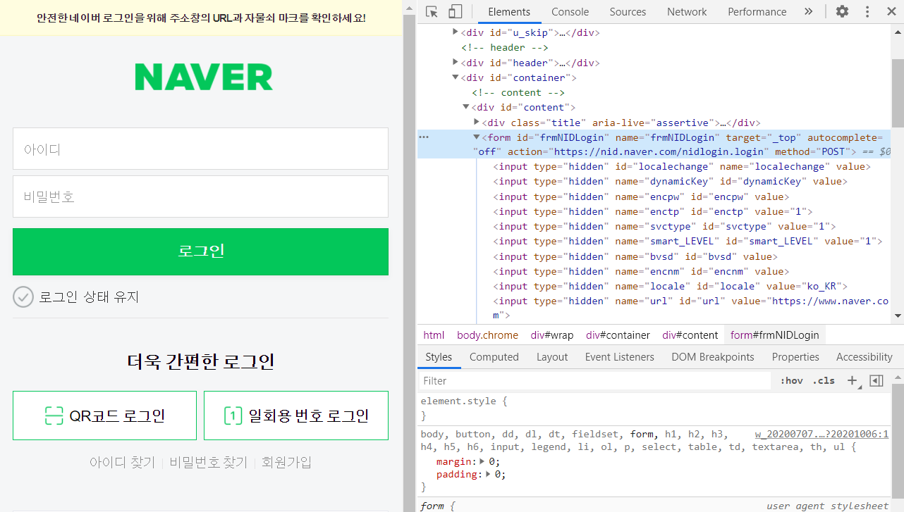 추가적으로 우리는 인터넷은 크롬을 사용한다. 왜냐하면 웹개발 환경에서 특정 요소를 제외하거나 추가하여 보는 게 가능한 크롬 개발자 도구이기 때문이다. 사용법으로는 아래와 같다.