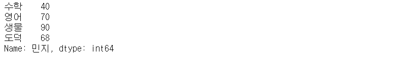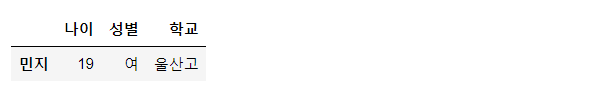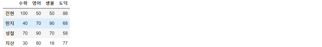 # 인덱스로 민지부분의 행 데이터를 불러왔다.