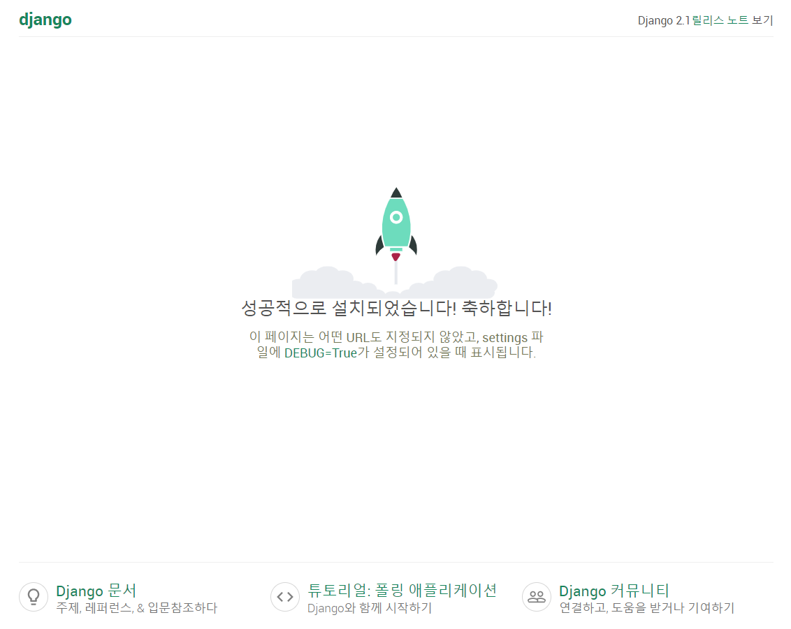 이렇게 문서가 뜨면 django를 시작할 준비가 완료된 것이다.