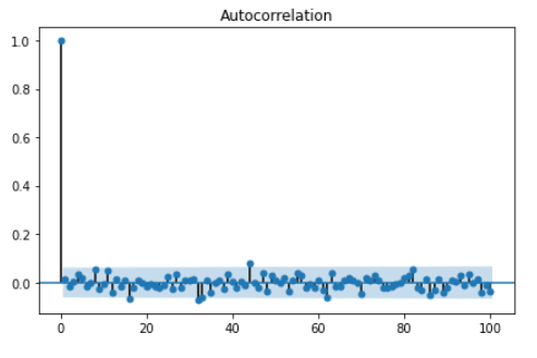 - x축 부분을 보면 파란색 범위가 보인다. 저 범위를 벗어나 있으면 Autocorrelation이 있다고 판단하고(use_vlines=True) 내부에 있다면 Autocorrelation이 없다고 판단한다)