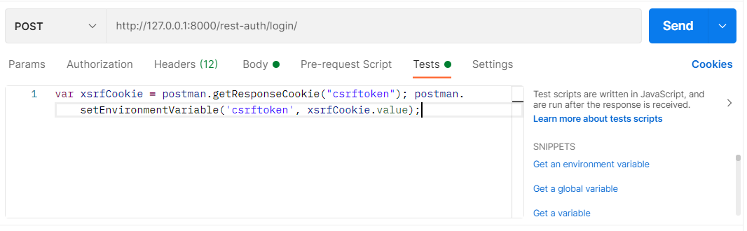 postman.setEnvironmentVariable('csrftoken', xsrfCookie.value);