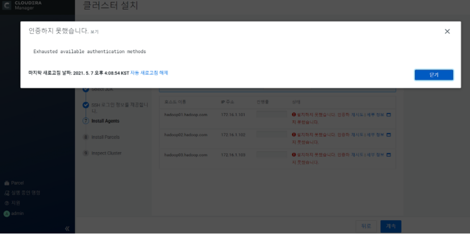 클라우데라를 설치하다 아래와 같은 에러가 발생 할 수 있다.
