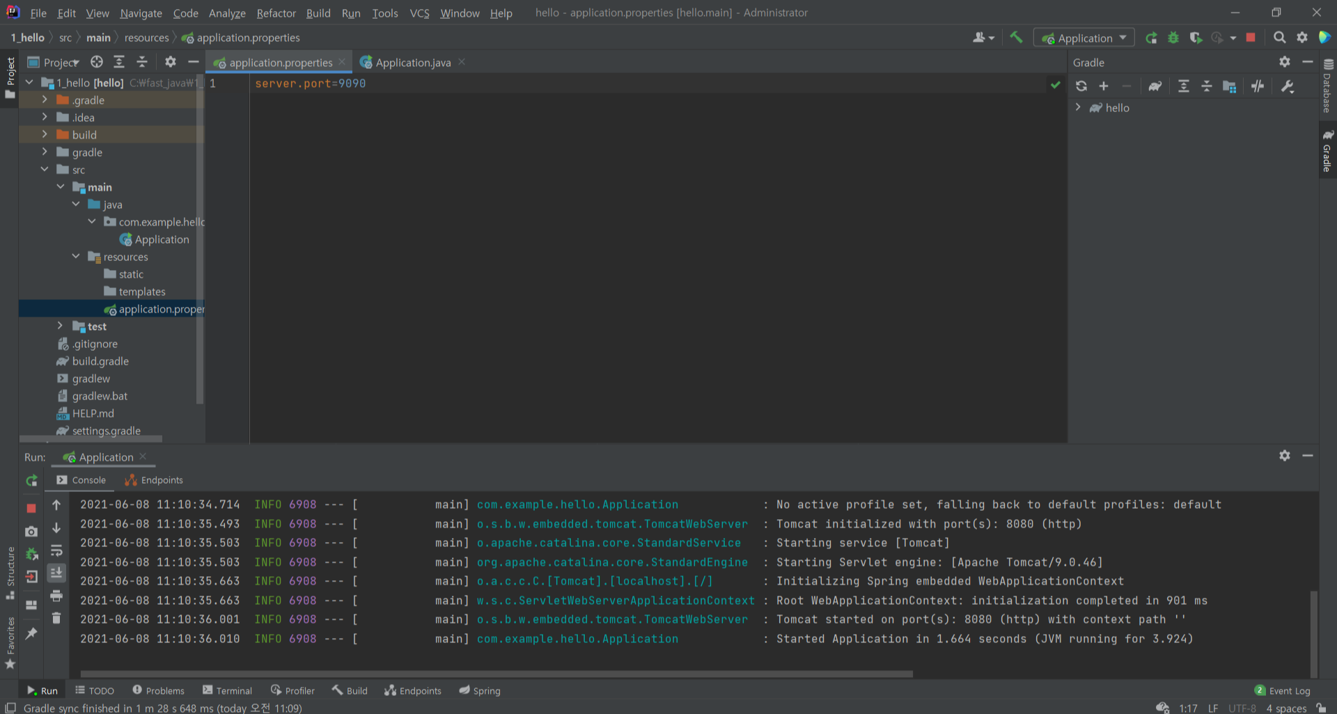 위의 사진은 9090으로 포트를 변경 한 것을 알 수 있다.