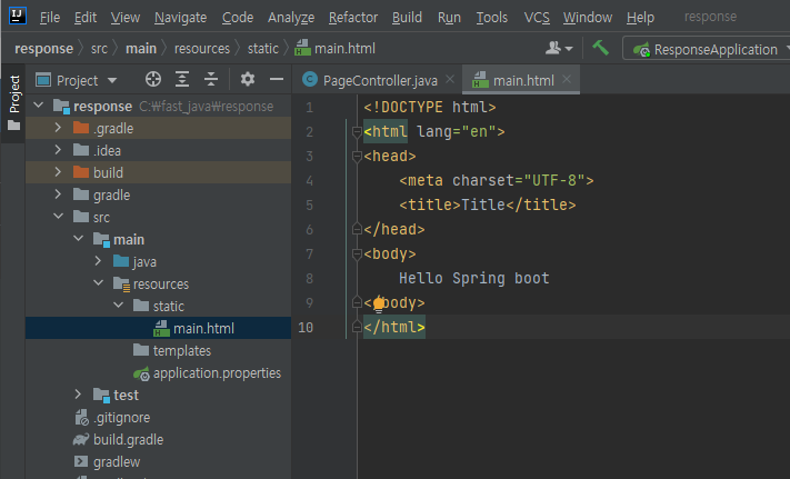 html파일은 src/main/resources/static안에 main.html을 만들어주자. 대략적인 구조와 방식은 아래의 사진과 같다.