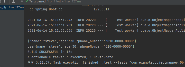 우선적으로 objectmapper를 위와 같이 생성하자. 우선 object를 아래와 같이 생성하자. 아래는 User 클래스는 만든 것이다.
