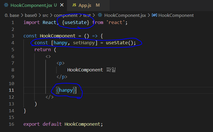 이 부분은 useState를 사용하기 위해 import 한 부분이다.
