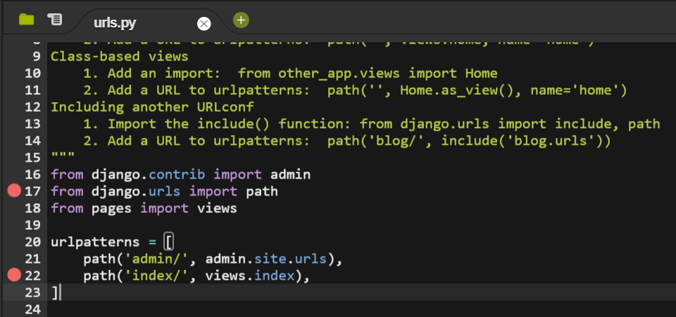 이제 urls.py 설정을 할 거다. 모든 앱을 생성할 때 지금 내가 하는 순서대로 할 수있도록 연습을 지금부터 하자.