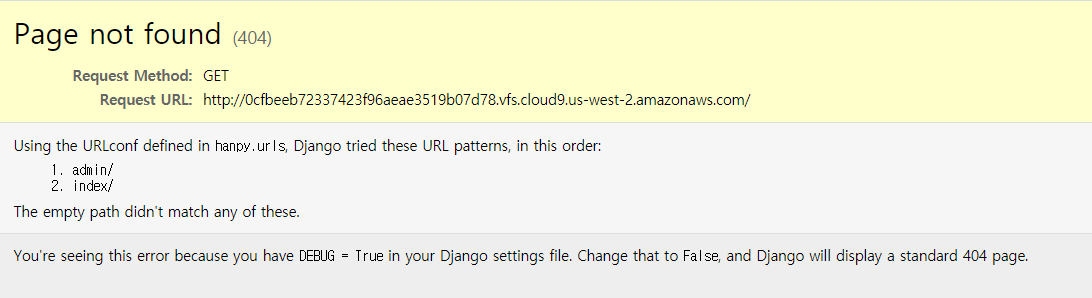 이러한 창이 뜬다면 인터넷 주소창에서 뒤에 "index/"를 추가해 주면된다.