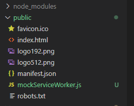 그러면 아래와 같이 public 폴더에 mockServiceWorker.js 파일이 생긴 것을 알 수 있다. 내부 내용은 해석할 필요없다.