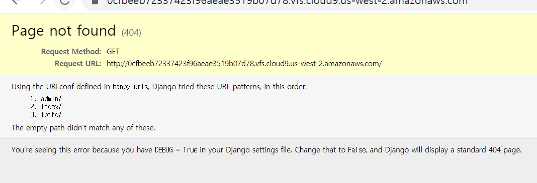 혹여나 이런 거 뜬다면 앞에서 말한 것처럼 주소 뒤에 '/lotto'를 추가하면 된다.