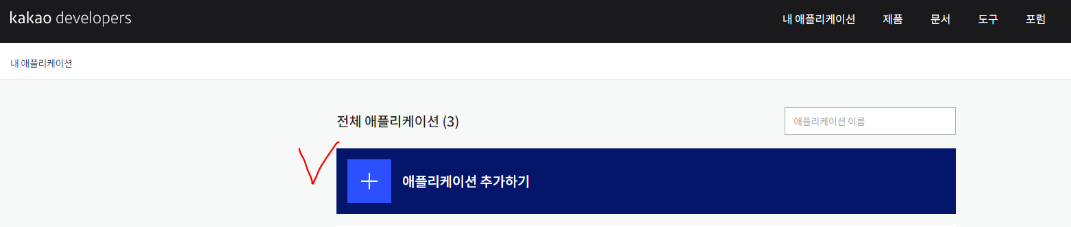 위의 사이트에 들어가서 아래의 애플리케이션을 추가한다. (test 용이면, 자유롭게 사업자 명도 적으면된다. )