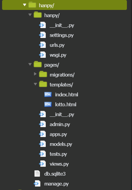 hanpy파일 안에 들어있는 4개의 .py이가 프로젝트관련이라고 보면된다.