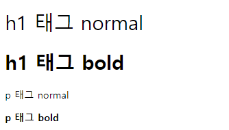 <h1 class="bold">h1 태그 bold</h1>