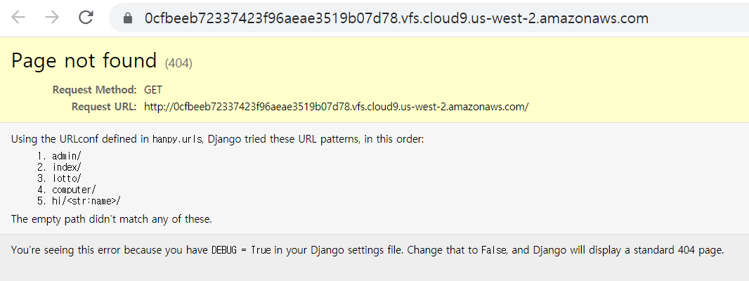 위 화면이 서버 열면 생기는 모습이다. 사이트 주소 뒤에 '/hi/hanpy/'를 붙여 보겠다.