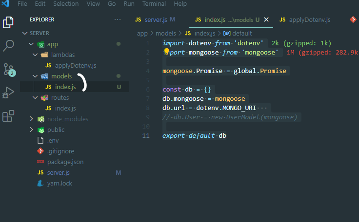 이제 작성한 models와 lambdas를 server.js에서 연결을 해주면 된다. server.js를 아래와 같이 추가해 주자.