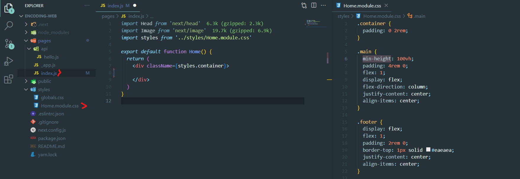 pages/index.js를 확인하자. 이부분이 첫 페이지부분의 UI가 적혀있는 부분이다. 그리고 CSS는 styles/Home.module.css부분을 참고하면된다.