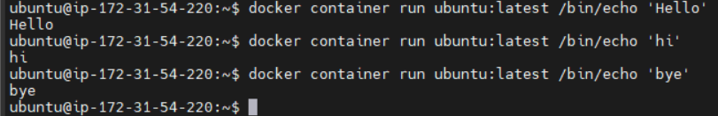 로딩되는 cmd창을 좀 더 보면 위와 같다. 1번은 local에 image가 있는지를 찾는 것이다. 없기 때문에 2번에서 pull로 다운로드하여 설치를 하는 것이고, 3번에서 실행 결괏값이 나온다고 할 수 있다. 즉, 설치한 적이 없어도 알아서 나의 서버로 다운로드해서 실행시켜준다.