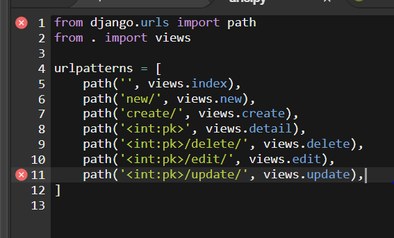 그런데 articles app 안에 urls 없다. urls.py 만들자.