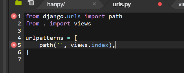 urls 만들고 위와 같이 친다. urlpatterns 안의 값이 비어있어도 반드시 유지시켜 놔야한다.