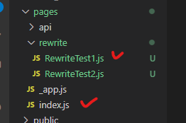 /rewrite/RewriteTest1 로 접속을 한 경우에는 rewrite가 되지 않고, /rewrite/RewriteTest1 페이지가 보인다. 그러나 /rewrite/RewriteTest3의 경우는 '/'로 rewrite 되는 것을 확인 할 수 있다. 정리하면, 기존에 페이지가 존재한다면, rewrite는 되지 않는다.
