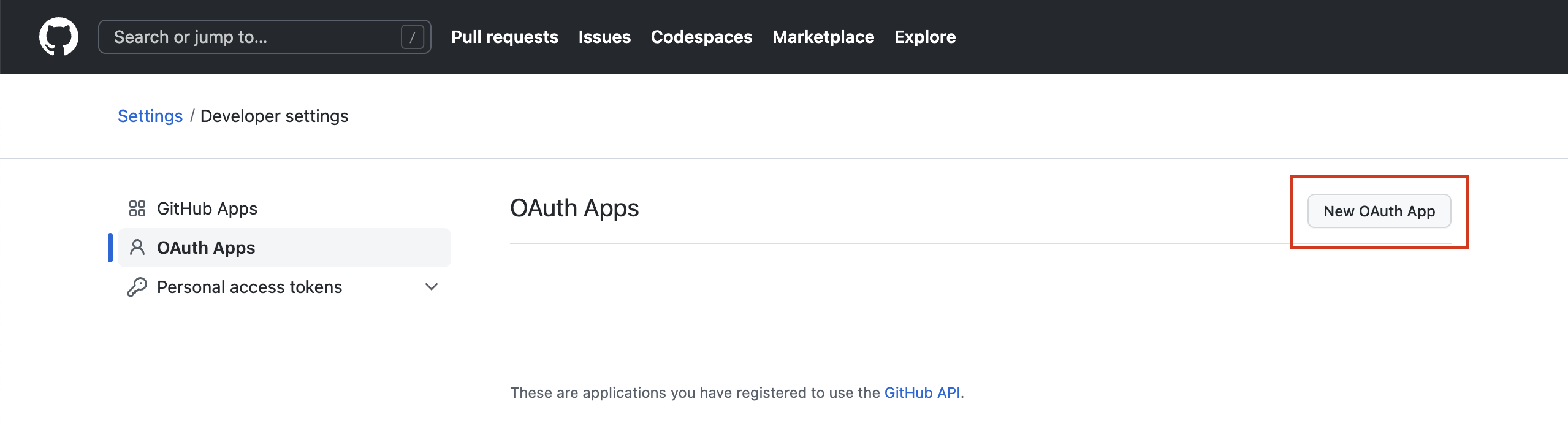 당연한 말이지만 github에 oauth를 한다고 등록하는 과정이 우선 필요하다. https://github.com/settings/developers 로 접속을 해서 Apps를 하나 만들자.