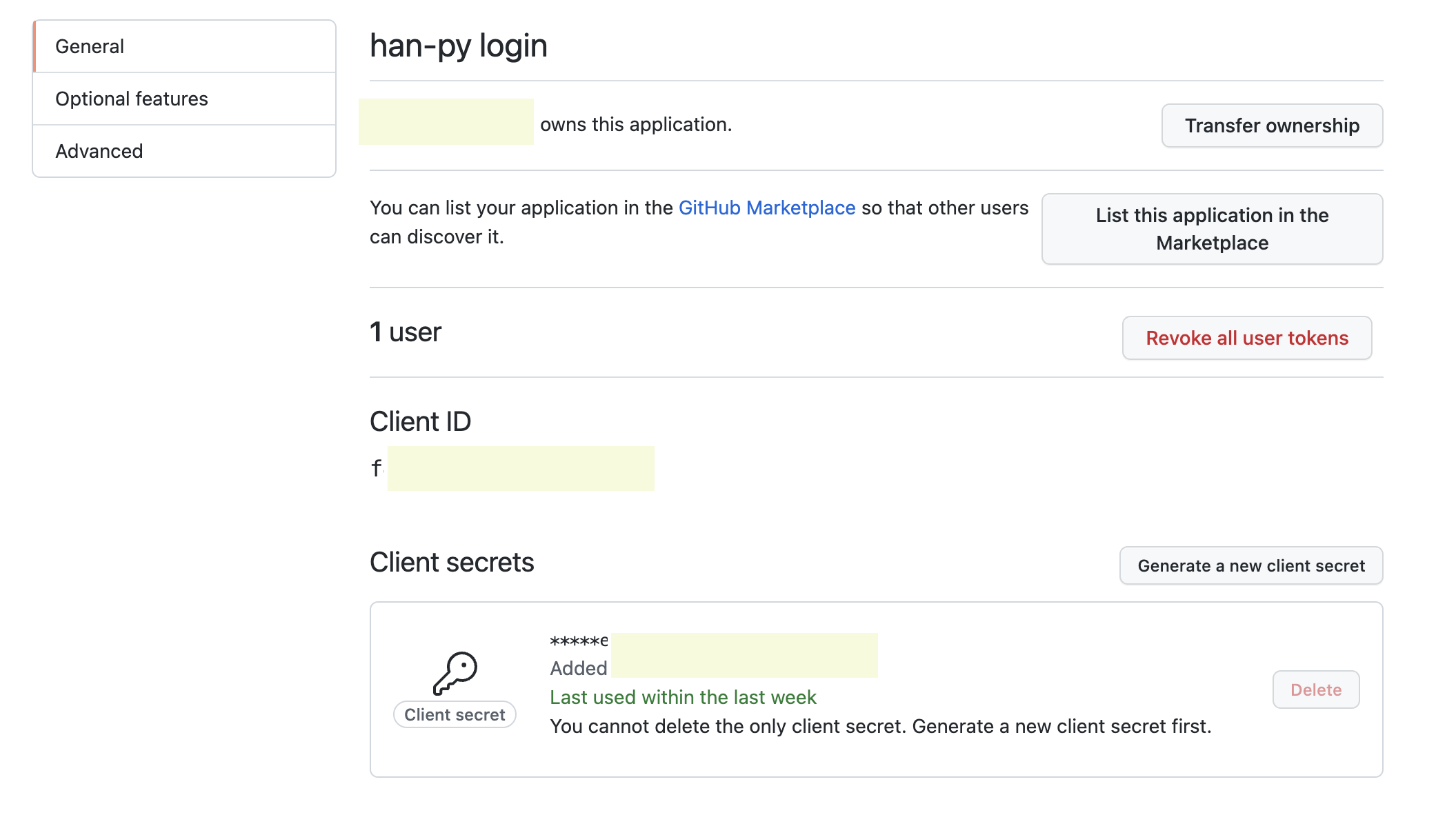 우리가 application을 생성을 하면, 위와같이 clientID와 client secrets를 알 수 있다. 이부분을 저장해 두자.