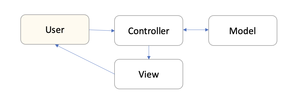 아래는 MVC에 대한 대략적인 다이어그램을 그린 것이다. 아래의 그림에서는 View와 Model이 데이터를 주고받지 않는다. 하지만 (Observer 패턴) 정책에 따라 View와 Model이 데이터를 주고받을 수도 있다. 정리하면, MVC 패턴이란 Model View Controller를 활용하여 아키텍처를 만든 총칭이라고 할 수 있다. MVC 패턴 안에서도 어떤 디자인 패턴을 추가로 사용하는지에 따라 변경될 수 있다.