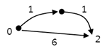 그림은 입력인 N=2, E=3, 시작과 끝 지점, 구간 거리가 아래와 같은 경우의 예이다.